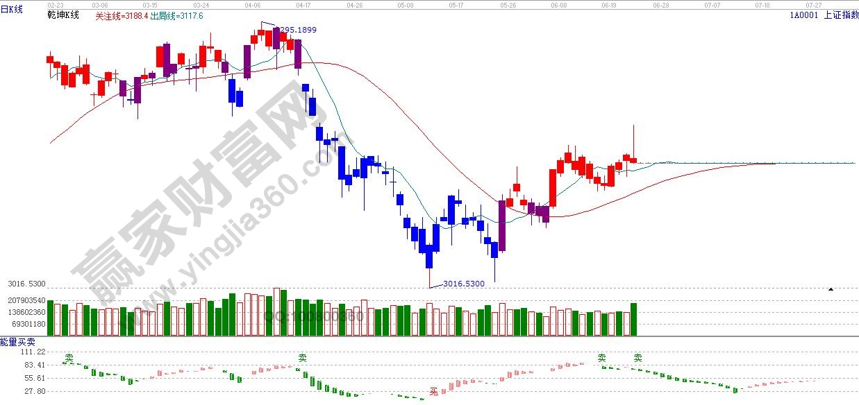 ☆依據(jù)贏家江恩理論系統(tǒng)能量買賣提示:“賣”字出現(xiàn),紅綠柱子反復(fù),須控制倉位。