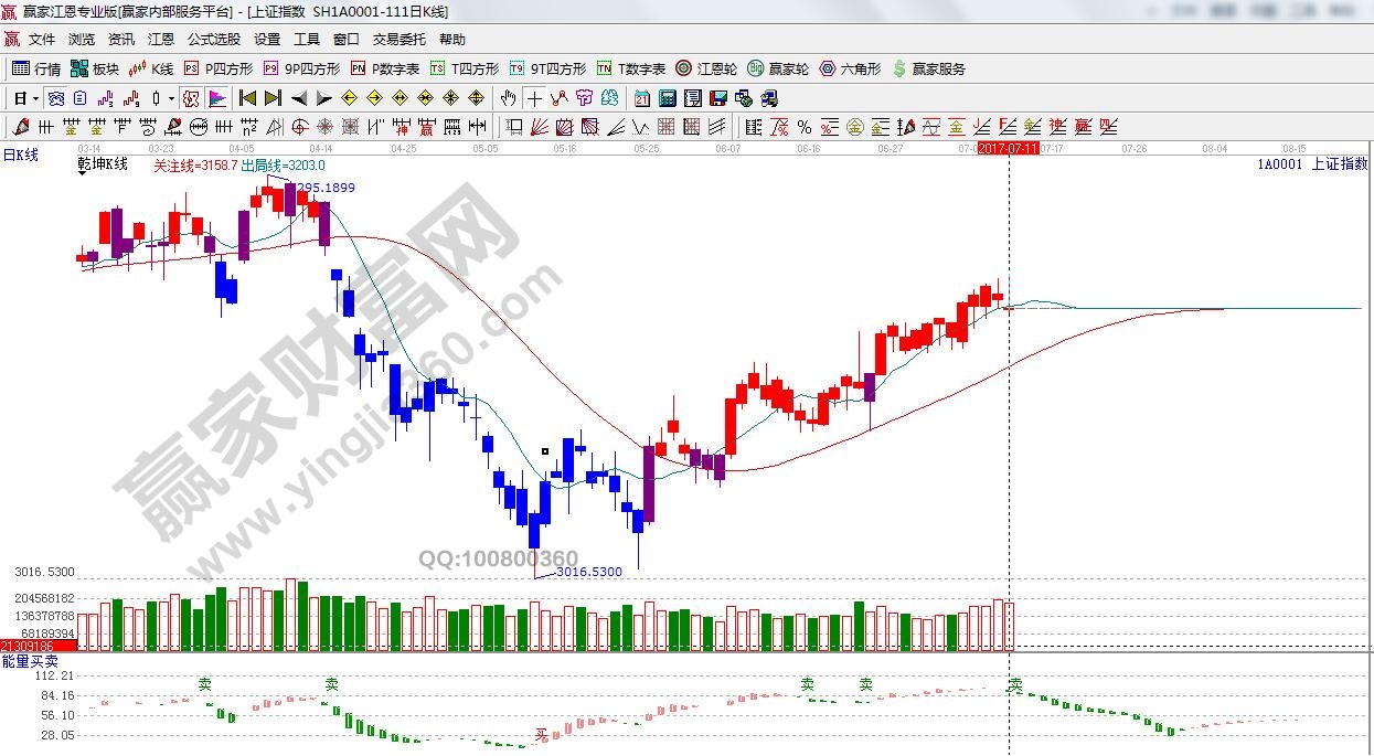 ★依據贏家江恩理論系統(tǒng)乾坤K線提示:k線處于紅色多頭區(qū)域,藍色出局線之上,依據規(guī)則,看多。