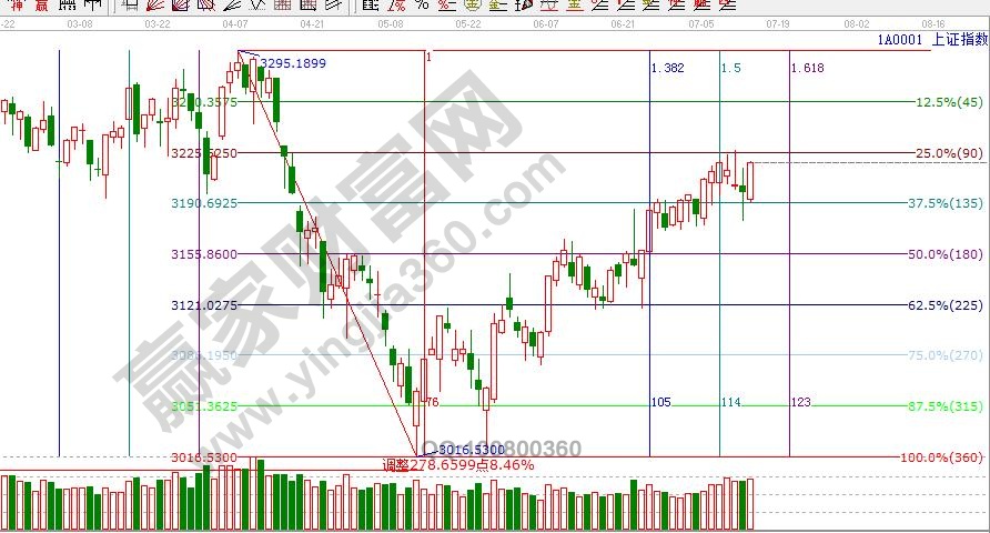 江恩看盤綜述:依據(jù)贏家江恩技術(shù)工具分析得出:滬指距離極反通道藍色線近在咫尺,依據(jù)規(guī)則處于風(fēng)險壓力區(qū)域,周四,早盤回踩3190點后,在銀行、保險、券商、稀有金屬的推動下再次回升。繼續(xù)死抗股指繁榮,上方阻力日線藍色線是3245點,缺口是3238點。波段高位抗得越久,風(fēng)險就越大。操作上,保持謹(jǐn)慎,逢高減持近期累計漲幅較大標(biāo)的,低吸中報業(yè)績預(yù)增良好的滯漲個股。