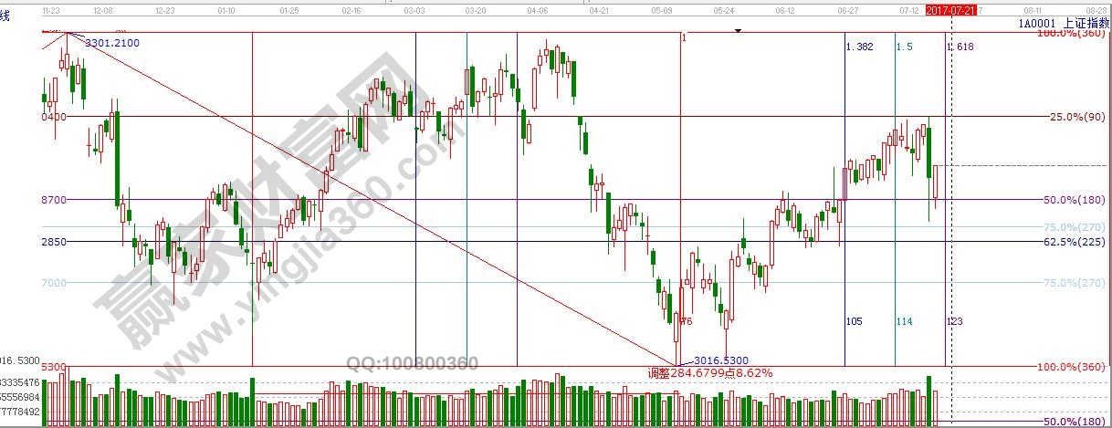 ☆依據(jù)贏家江恩理論系統(tǒng)黃金時間周期線提示:下一時間點在7月21日附近。