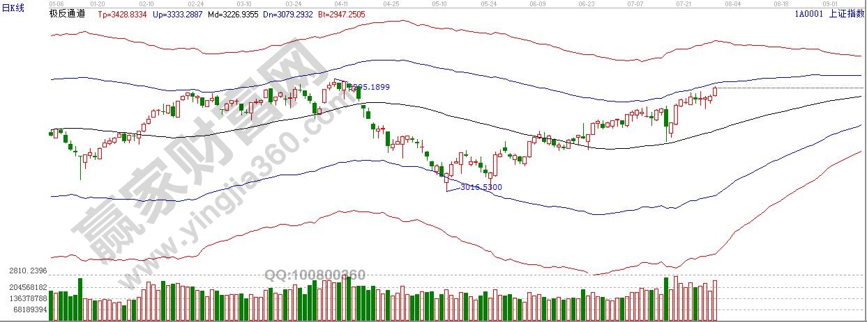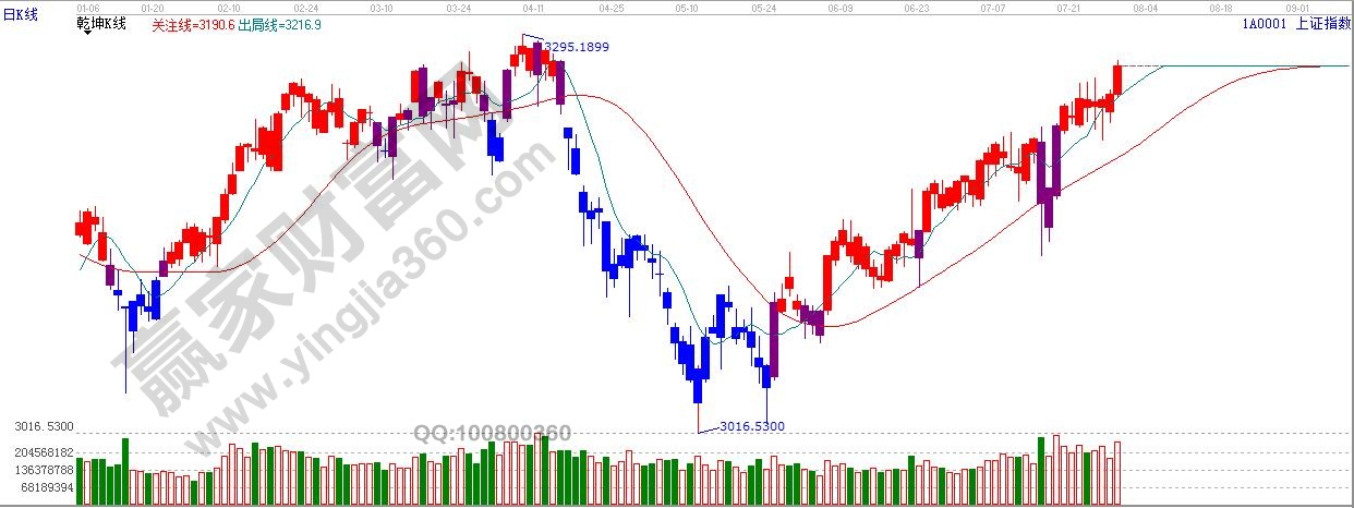 ★依據(jù)贏家江恩理論系統(tǒng)極反通道提示:滬指短期整理之后,今日再次向上創(chuàng)下新高,試探日線藍(lán)色線3280附近。整體趨勢(shì)保持多頭勢(shì)頭。