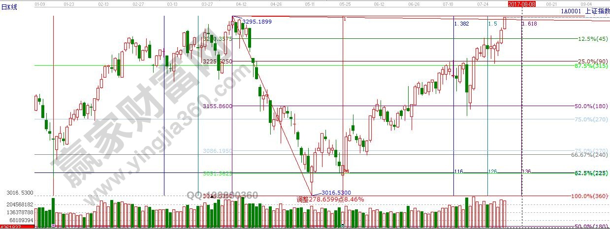 ☆依據(jù)贏家江恩理論系統(tǒng)黃金時(shí)間周期線提示:股指延續(xù)強(qiáng)勢(shì)表現(xiàn)。下一下窗口8月8日附近。