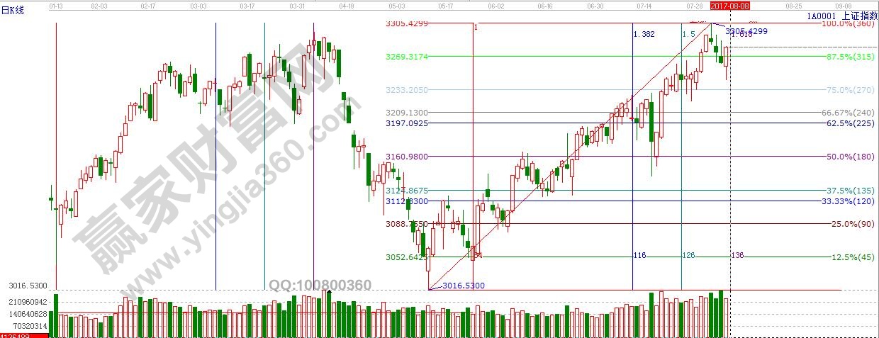 ☆依據(jù)贏家江恩理論系統(tǒng)黃金時(shí)間周期線提示:明日是近期提到的8月8日窗口,觀察量?jī)r(jià)表現(xiàn)。