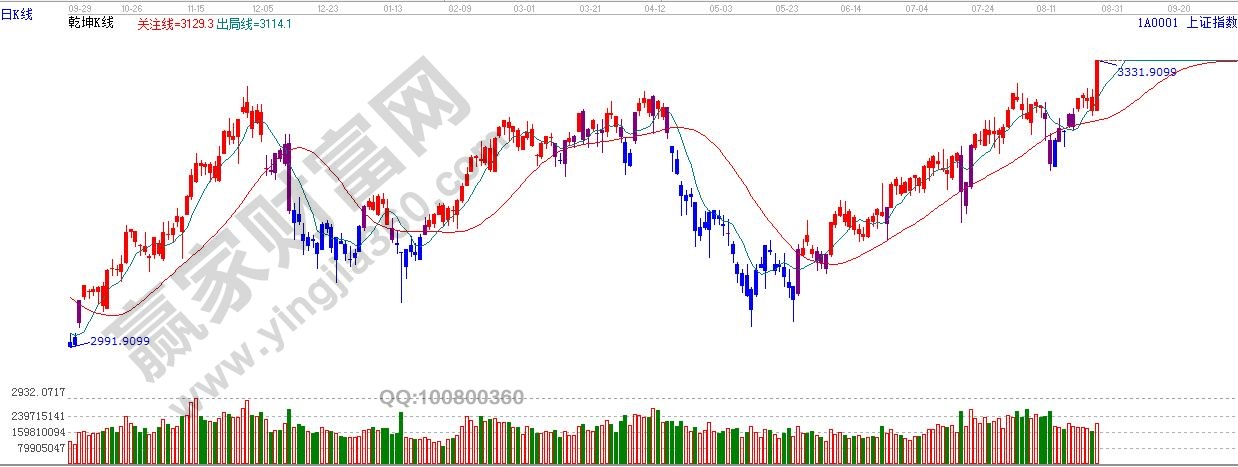 ★依據(jù)贏家江恩理論系統(tǒng)乾坤K線提示:滬指由紫色k線,轉變?yōu)榧t色k線,進入多頭區(qū)域,依據(jù)規(guī)則,看多。