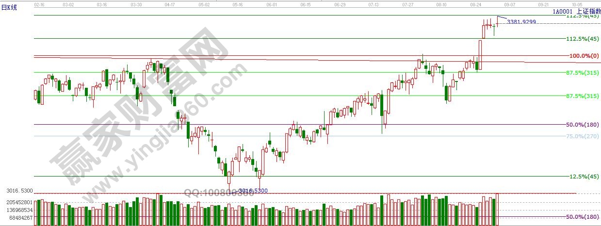 江恩看盤綜述:依據(jù)贏家江恩技術(shù)工具分析得出:周五,指數(shù)高位震蕩行情,個股活躍,滬指在3381點(diǎn)遇阻回落,極反通道30分生命線向上,目前生命線是3350點(diǎn)附近,此位置的得失決定短線的趨勢,整體上,10.18會議前,市場大概率會平穩(wěn)表現(xiàn),慢牛行情,本周時間點(diǎn)上,留意9月8日附近,操作上,關(guān)注錯殺的鋼鐵股機(jī)會,以及低位或者疊加邏輯的次新股。