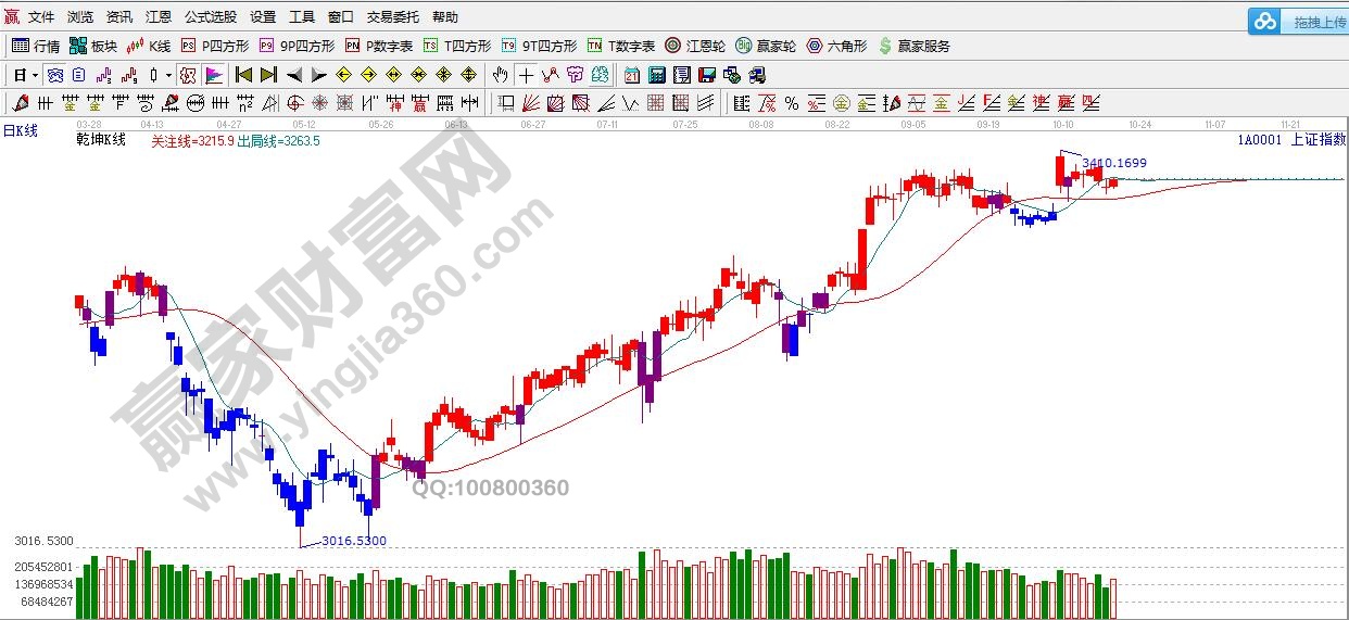 ★依據(jù)贏家江恩理論系統(tǒng)乾坤K線提示:紫色k線,轉(zhuǎn)入紅色線,依據(jù)規(guī)則,破位綠色短線出局線,短線謹(jǐn)慎。紅色關(guān)注線之上,波段依舊看多。