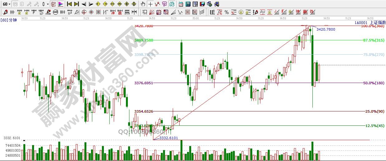 ☆依據(jù)贏家江恩理論系統(tǒng)江恩波段百分比提示:60分百分比顯示,短線阻力3395點、3410點附近,支撐3376點,3354點。