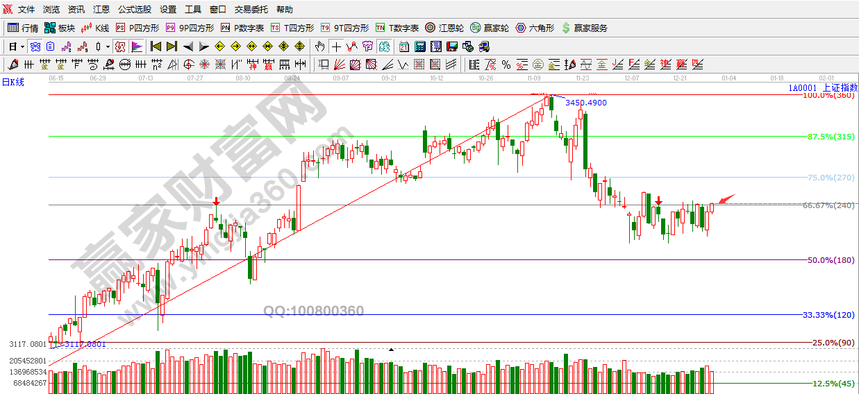 江恩看盤綜述:依據(jù)贏家江恩技術(shù)工具分析得出:周五,指數(shù)震蕩走高,尾盤收復(fù)3305點關(guān)鍵位置,是一個好的信號,但美中不足的是量能同比萎縮,接下來繼續(xù)關(guān)注3305點突破的有效性。如新年第一個交易日,如能繼續(xù)保持在3305點之上,指數(shù)有望繼續(xù)看高日線生命線3342點附近。不然繼續(xù)保持謹(jǐn)慎,操作上,繼續(xù)控制倉位的前提下,重點關(guān)注成長性良好有業(yè)績支撐的小盤股。