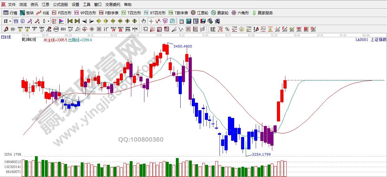 ☆依據(jù)贏家江恩理論系統(tǒng)極反通道提示:滬指持續(xù)走高,盤中突破60分藍色上軌線,收盤3385點報收,預計短期繼續(xù)圍繞藍色線震蕩位置,下方日線生命線支撐依舊是3345點附近。整體,日線生命線之上,趨勢強勢。