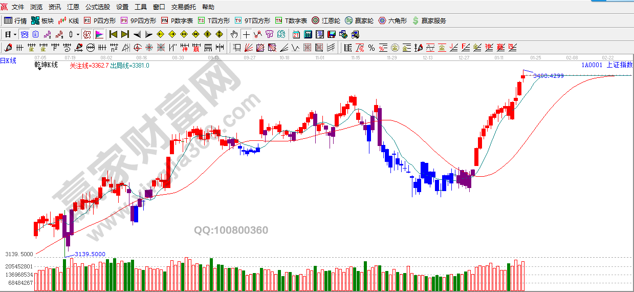 ★依據(jù)贏家江恩理論系統(tǒng)乾坤K線提示:滬指依舊處于紅色區(qū)域,短線出局線之上,依據(jù)規(guī)則,多頭。