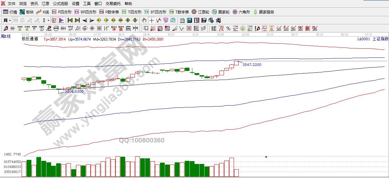 ★依據(jù)贏家江恩理論系統(tǒng)極反通道提示:滬指在極反通道藍(lán)色線之上強(qiáng)勢(shì)區(qū)域運(yùn)行,繼續(xù)紅色上軌線運(yùn)行,整體趨勢(shì)多頭,短期需要先關(guān)注周線藍(lán)色上軌線,3574點(diǎn)附近。