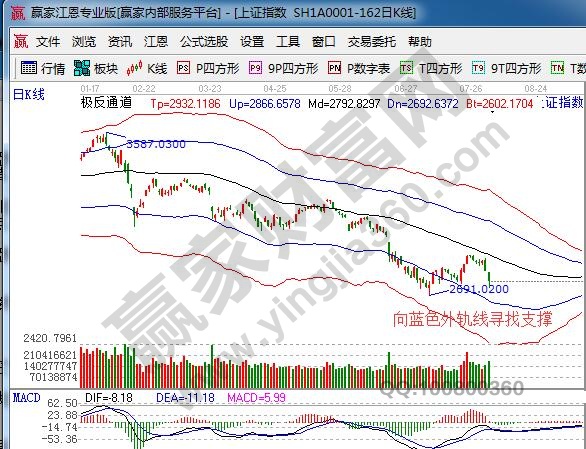 ☆依據(jù)贏家江恩理論系統(tǒng)極反通道提示:滬指暴跌中短周期15、30、60分鐘極反通道于午盤出現(xiàn)時價共振,跌幅收窄,短期反攻看5分鐘生命線2772及外軌線2790附近,日線按規(guī)則向藍色下軌線尋找支撐。