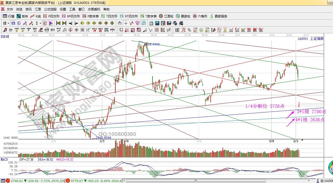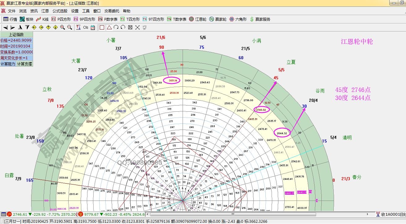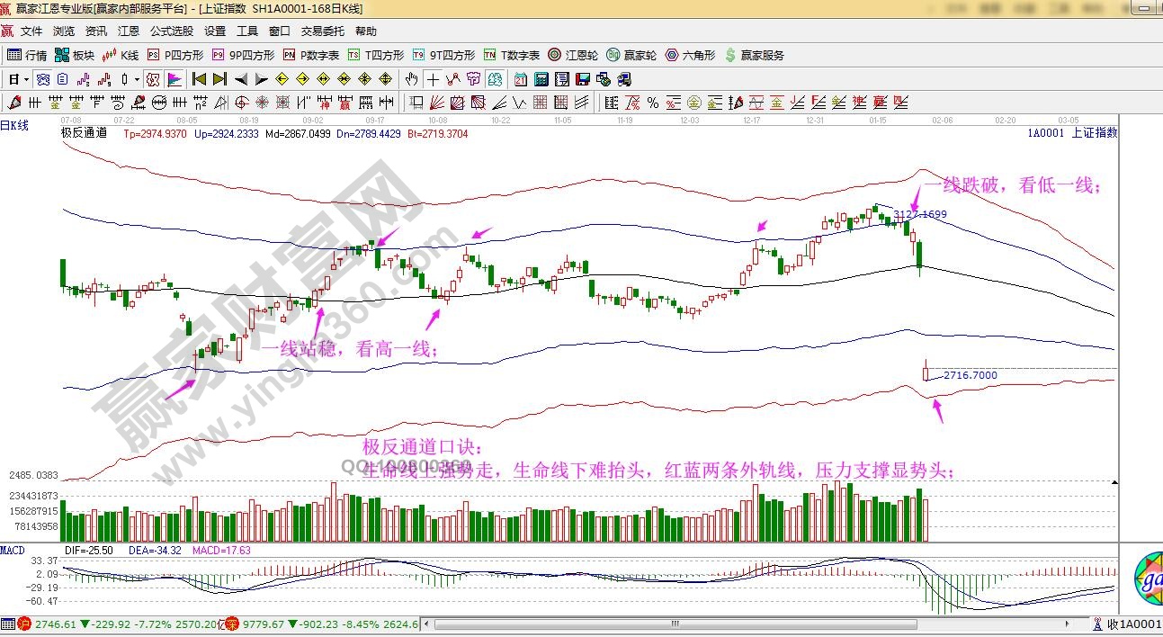 江恩看盤綜述:通過贏家江恩理論系統(tǒng)趨勢、時間、價格工具綜合評判市場一星看多(五星評級標(biāo)準(zhǔn))。2020年春節(jié)后第一個交易日,上證低開8.42%,創(chuàng)近23年記錄!回顧江恩時間分析,1月13日時間點如期見本輪高點及1月20日時間點見次高點后,指數(shù)一路下行至今。節(jié)前大跌失守生命線,當(dāng)前低開失守藍(lán)線,按照規(guī)則,下方紅色外軌線就在眼前,對應(yīng)支撐2676點!縱觀A股近30年歷史,只有5次擊穿紅色下軌線,隨后市場在紅色外軌線止跌或成為階段底部,其中不乏止跌后快速反彈,或進(jìn)入震蕩筑底階段.那么,對應(yīng)當(dāng)下持續(xù)殺跌至紅色外軌線附近,要做的是跟隨市場的時價信號,等待并捕捉新的階段性入場信號。4號盤中阻力2757、2772點,支撐2692、2644點。操作策略,指數(shù)生命線下弱勢區(qū)運行,倉位3成以內(nèi),穩(wěn)健者空倉休息。2月4日是立春節(jié)氣,也是庚子鼠年的起點,新一輪的循環(huán)也即將開啟,不要遠(yuǎn)離市場!