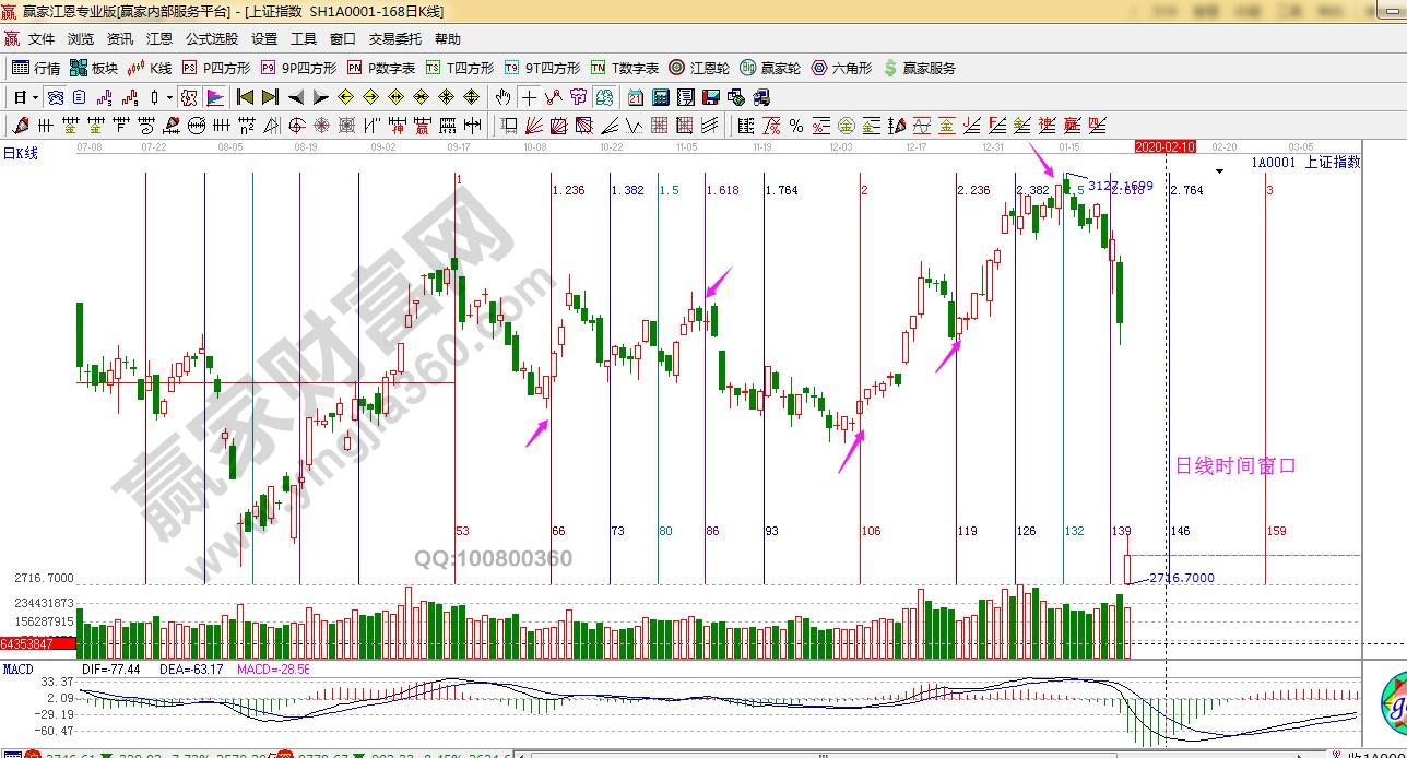 ☆依據(jù)贏家江恩系統(tǒng)江恩黃金時間周期線分析:江恩時間周期循環(huán)預(yù)判2月未來時間窗口,10號、17號、27號。