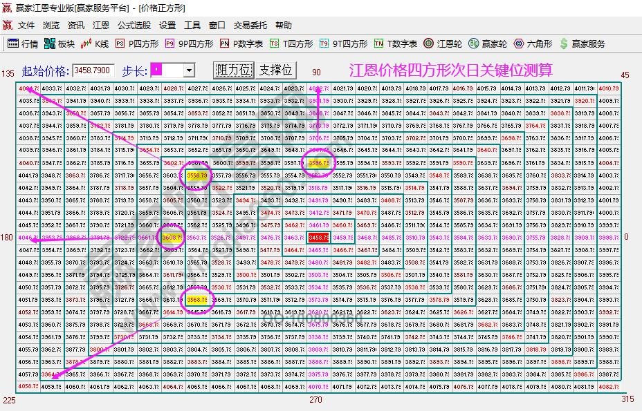 26號日內(nèi)空間關(guān)鍵位測算:江恩價格四方形預(yù)判支撐3558、3568,壓力3596、3608。