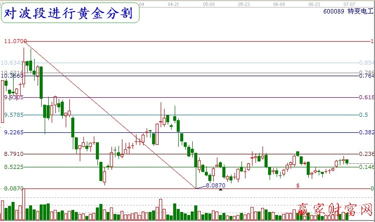 同黃金比率的衍生比率相比,7倍與1.618的四次方6.854很接近,而同時,6.854也是波浪理論中預測第五浪頂?shù)囊粋€重要比率,亦即是一個趨勢的完結水平。