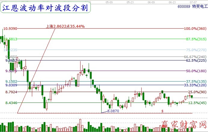 Ⅴ 對于江恩波動法則中,波動比率四分之一、八分之一、八分之三及八分之五等,都可以在