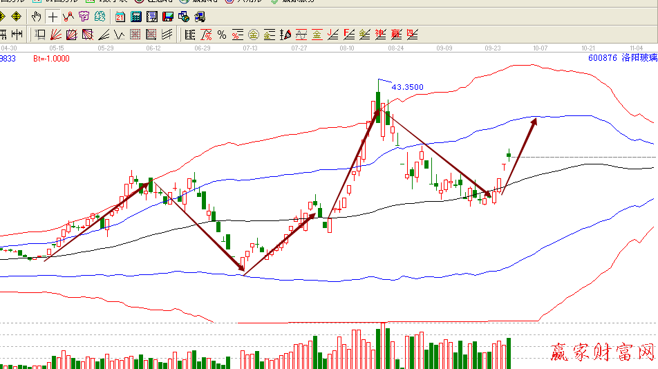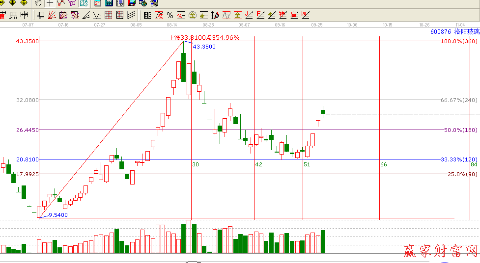 我們就以洛陽(yáng)玻璃為例來(lái)展示贏家江恩的買(mǎi)賣(mài)方法。