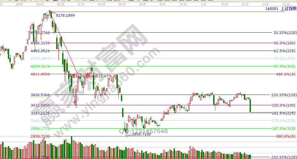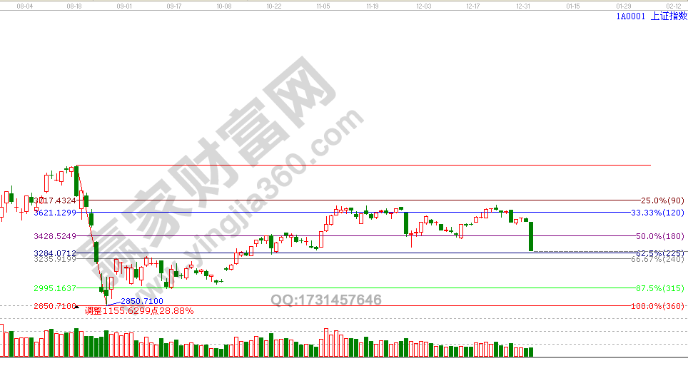 我們看到當(dāng)前大盤的波動,剛好是在2015年8月18日形成的高點4006-2015年8月26日形成的低點2850的波段之內(nèi),因為我們就可以以該這兩個高低點為分析依據(jù),對現(xiàn)在的市場進行分析。下方的下跌支撐位置分別為3284-3235-2995。