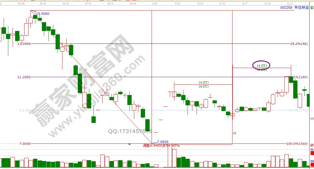 4、計(jì)算由重要頂部或底部至今運(yùn)行了幾個(gè)星期。一般而言,短期時(shí)間循環(huán)一般以45天左右為著(6至7周)、亦有30天左右(3至5周)、60天左右(8至9周)、75天左右(10至11周)、90天左右(12至13周)、120天左右(17至18周)等等。