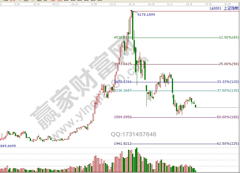 “最重要的阻力位是任何最高價或最低價的50%,其次是平均指數(shù)或個股最低價的100%,你還應當使用200%、300%、400%、500%、600%或更高的百分比,這取決于從最高價或最低價開始的價格和時間周期。第三個重要的阻力位是最高價和最低價的25%,第四個重要的阻力位是極限最低價和極限最高價的12.5%,第五個重要的阻力位是極限最高價的6.25%,但這僅在平均指數(shù)或個股在非常高的價位交易時使用。”“第六個重要的阻力位是331/3%和662/3%,這些百分比應緊接在25%和50%之后得到計算和關注。”