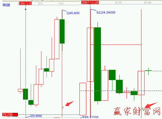 江恩對神奇數(shù)字7的重視這里不做贅述,而市場經(jīng)濟周期的循環(huán)數(shù)字也是7。以上證A股指數(shù)為例,在1994年創(chuàng)出325.89的低點后,在7年之后的2001形成了2245的歷史性高點。當前的上證指數(shù)自2007年走出來6124的歷史點,在7年后2014年的4月誕生了1974的低點后一路上揚至今。