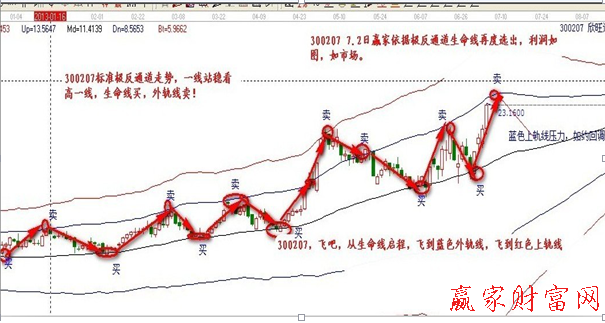 最后,記住4句打油詩:白線以上強(qiáng)勢走,白線以下難抬頭;紅黃兩條外軌線,壓力支撐顯勢頭。在極反通道中,趨勢的研判以白色生命線為主,線上強(qiáng)勢,線下弱勢,贏家江恩建議只做生命線上方的強(qiáng)勢股;5條線互為阻力支撐線,當(dāng)前價格在線上,此線為支撐,站穩(wěn)即是買點(diǎn);當(dāng)前價格在線下,此線為壓力,過不去獲利出局。