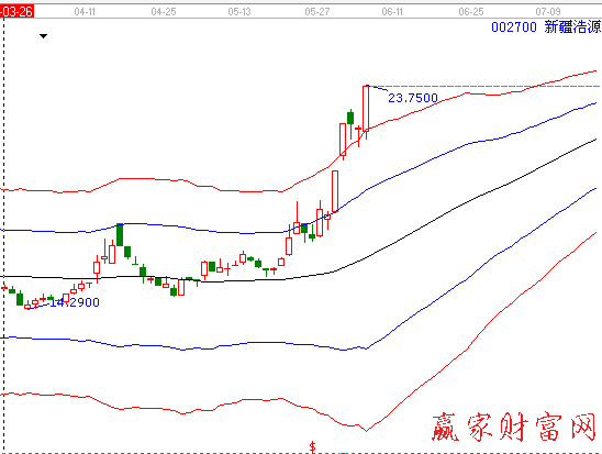 下圖為002700在3月26日到6月5日的極反通道圖,我們從趨勢(shì)看,此只股票較為強(qiáng)勢(shì),而我們正是要做這樣的股票。何謂強(qiáng)勢(shì)股票,強(qiáng)勢(shì)股票就是在贏家站穩(wěn)極反通道黑色生命線的股票即為強(qiáng)勢(shì)。從圖中可以看出此股票從三月末開始就可以歸入可操作股票。現(xiàn)在此股票已進(jìn)入了極強(qiáng)通道,風(fēng)險(xiǎn)增大,也是我們?cè)撎貏e注意風(fēng)險(xiǎn)的時(shí)候了。