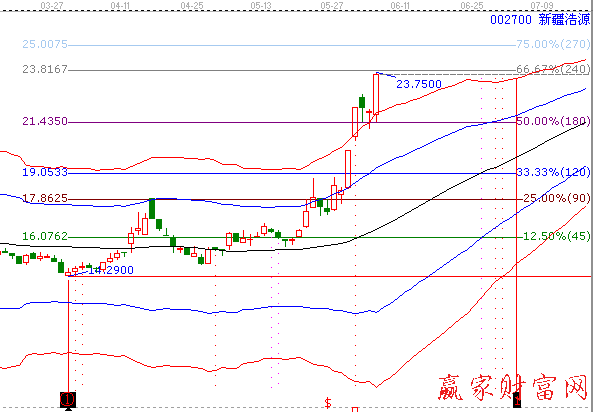 下圖為新疆浩源002700的三步分析法展示,從價(jià)格工具上,上方壓力是23.816,那么現(xiàn)在持股的朋友就看是否可以突破此壓力,不破就要注意規(guī)避風(fēng)險(xiǎn),從時(shí)間看5月29日正好是變盤點(diǎn),這也是我們選擇此股的依據(jù)。當(dāng)然,由贏家軟件,在生命線就可以關(guān)注,關(guān)于極反通道的使用就不一一贅述了。更多可以關(guān)注