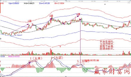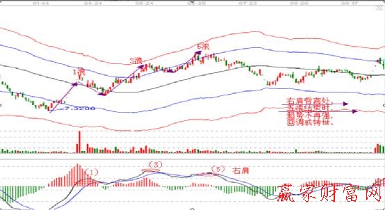 如何認識MACD的頭肩頂圖形與驅(qū)動五浪互相驗證 ,借助下面的案例學(xué)習(xí),請看下圖。
