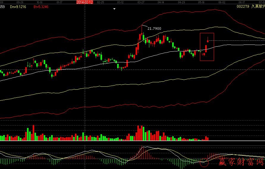 再結合成交量以及MACD指標來具體的分析一下,在本年度的5月20日也就是繼股價沖破生命線以后,成交量在大戶的帶動稍有起色,MACD指標近期隨處于零軸之下,卻出現了金叉,很好地看漲信號。如此以來,我們認為如果21號繼續(xù)有大戶的介入久其軟件的價格會繼續(xù)上漲,就算沒有大戶的繼續(xù)介入根據近半年的走勢下跌也不會有很明顯的跌幅。