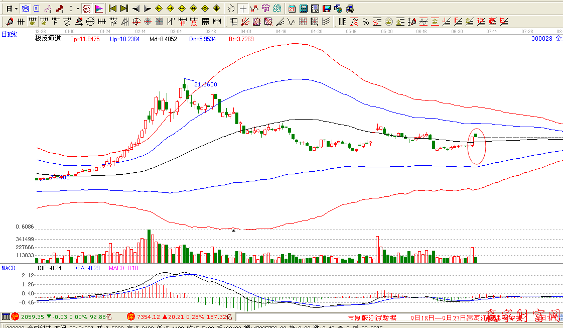 極反通道來分析一下該股目前狀況。如下圖所示,該股前期一直在生命線附近運行,生命線下運行形勢較弱,成交量萎縮配合走勢。在漲停之前該股穿過生命線,變生命線壓力為支撐力。緊接著該股放量漲停。目前該股站穩(wěn)生命線,站穩(wěn)之后應(yīng)該會有短時間的整理,整理之后如果可以站穩(wěn),隨后該股將看行強(qiáng)勢外軌線,并可能創(chuàng)下新高。