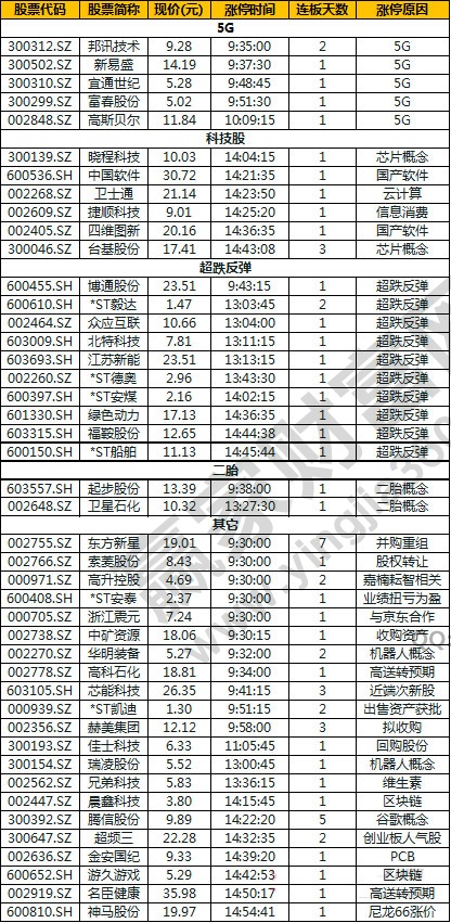 主流看點:5G、國產(chǎn)軟件、芯片、超跌 封板效率:較高