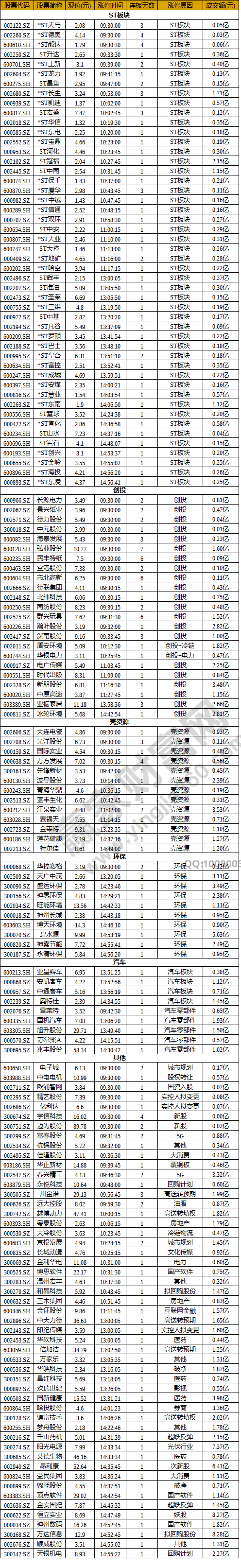 ST板塊、創(chuàng)投、殼資源、環(huán)保、汽車 封板效率:極高