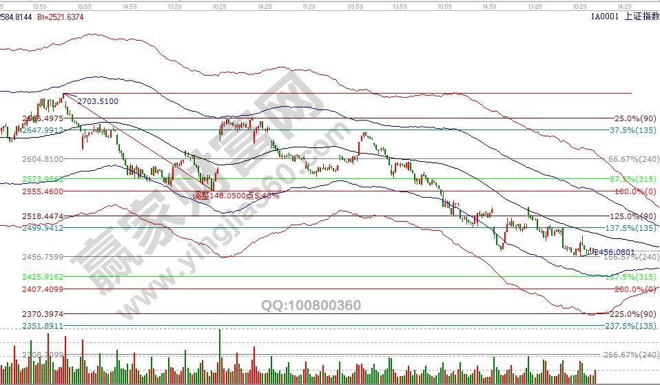 大盤(pán)日線失守黑色生命線震蕩下跌,按規(guī)則失守一線看低一線,調(diào)整空間看至藍(lán)色下軌線2400點(diǎn)附近,按歷史走勢(shì)規(guī)律當(dāng)K線下探此線確認(rèn)支撐后通常會(huì)有反彈出現(xiàn);空間點(diǎn)位上,江恩價(jià)格四方形顯示,3號(hào)大盤(pán)最低點(diǎn)同提示支撐2453僅相差2個(gè)點(diǎn),4號(hào)盤(pán)中第一支撐繼續(xù)看135度2453點(diǎn),第二支撐180度2421點(diǎn),盤(pán)中反壓位是90度2484、2496點(diǎn),激進(jìn)者可在支撐區(qū)間2453-2421開(kāi)倉(cāng)參與博弈,而穩(wěn)健者繼續(xù)等待江恩輪中輪提示的2391點(diǎn)和極反通道藍(lán)色下軌線2400點(diǎn)機(jī)會(huì);時(shí)間窗口,下周一1月7日為日線時(shí)間窗。操作策略,穩(wěn)健者空倉(cāng)繼續(xù)休息,等待藍(lán)色下軌參與機(jī)會(huì),激進(jìn)者支撐不破3成倉(cāng)短線快進(jìn)快出。