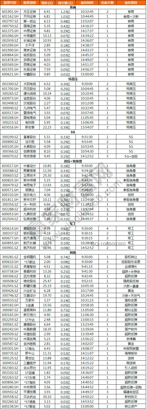 證券、特高壓、創(chuàng)投 封板效率:一般