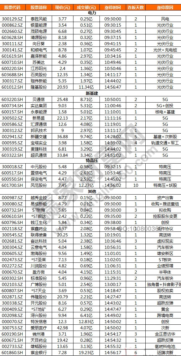 盤面上,午后券商尾盤大幅走低,國海證券、方正證券一度跌逾7%;黃金板塊午后穩(wěn)步走強,園城黃金(600766)一度大漲逾8%;發(fā)改委稱,中國將根據風電、光伏發(fā)電發(fā)展狀況調整2020年后的平價上網政策,受此消息影響,光伏板塊開盤大漲,茂順電源直線封板,風電板塊漲幅居前,龍頭泰勝風能(300129)一字漲停;5G板塊延續(xù)強勢,貝通信(603220)、新易盛(300502)等多股漲停;雄安新區(qū)板塊走強,渤海股份(000605)漲停。