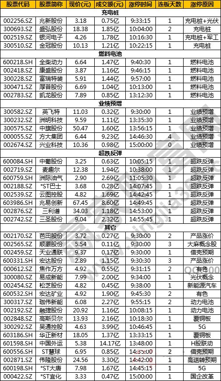 充電樁、燃料電池、業(yè)績(jī)預(yù)增 封板效率:較高