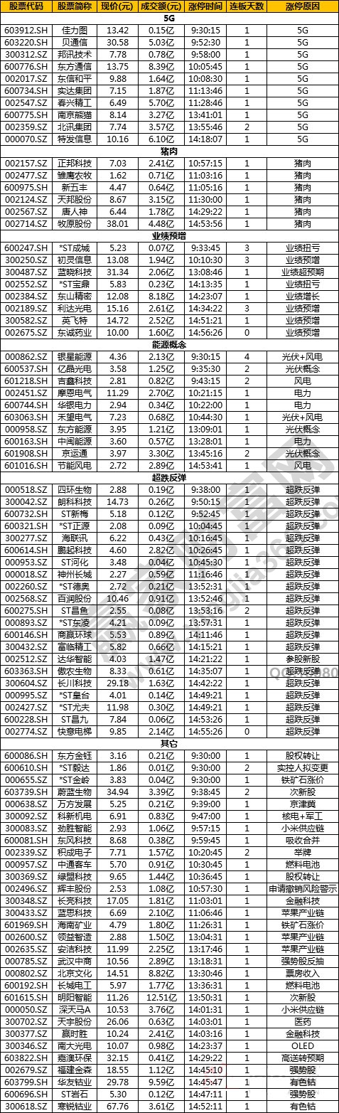 5G、業(yè)績(jī)預(yù)增、清潔能源 封板效率:較高