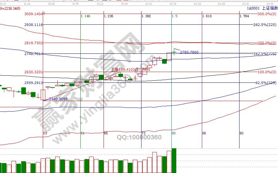 大盤在極反通道藍(lán)色上軌線與紅色外軌線構(gòu)造的超強(qiáng)通道內(nèi)運(yùn)行,此區(qū)域代表市場熱度較強(qiáng),板塊、個(gè)股均有機(jī)會輪番表現(xiàn),享受市場瘋狂的同時(shí),但要小心瘋狂背后不斷積累的風(fēng)險(xiǎn),目前工具還未出現(xiàn)警示信號,按規(guī)則穩(wěn)健者關(guān)注15分鐘生命線得失,激進(jìn)者關(guān)注60分鐘生命線得失;空間點(diǎn)位上,江恩百分比、江恩價(jià)格四方形提示,2730、2720是支撐,2765、2778為壓力,時(shí)間窗口是28號。操作策略,大盤日K線從強(qiáng)勢通道進(jìn)入超強(qiáng)通道,個(gè)股波動(dòng)空間增大,分批高拋藍(lán)色上軌線或紅色外軌線壓力個(gè)股,倉位切換至生命線附近有量能配合的個(gè)股,整體倉位保持在5-6成。