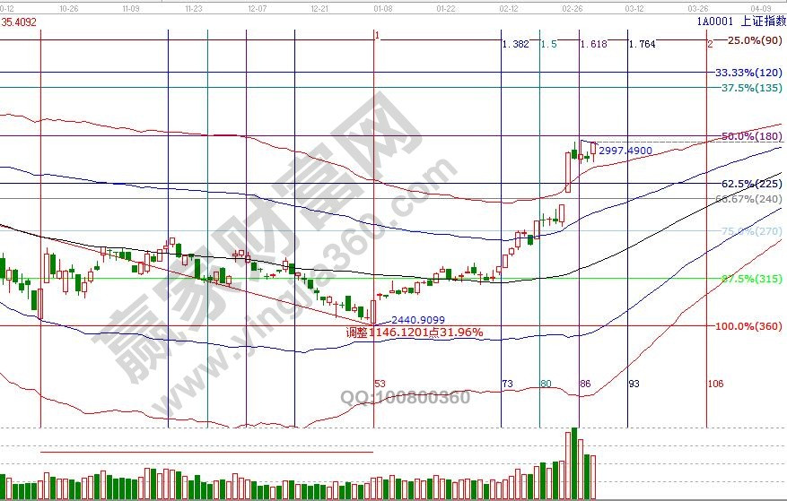 大盤時(shí)隔48周重回生命線上代表波段轉(zhuǎn)多,日線脫離極反通道在線外運(yùn)行,極強(qiáng)狀態(tài)運(yùn)行終需有回歸通道需求,月線生命線3060點(diǎn)是強(qiáng)壓,空間點(diǎn)位上,江恩輪中輪、價(jià)格四方形顯示,3031、3051為盤中壓力,2961、2944點(diǎn)為支撐,7號(hào)為時(shí)間窗口。操作策略,大盤維持日線震蕩,持股上享受瘋狂的同時(shí)不斷提高止賺位,即保護(hù)了利潤(rùn)又可將利潤(rùn)最大化,短線開倉(cāng)跟蹤15分鐘生命線得失,整體倉(cāng)位持在6成左右。