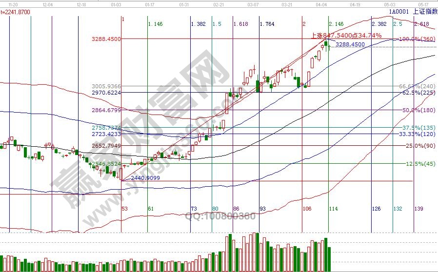 大盤(pán)日K線整體延續(xù)上攻勢(shì)頭保持在強(qiáng)勢(shì)通道內(nèi)運(yùn)行,8號(hào)時(shí)間窗口指數(shù)受紅色外軌線反壓回落,未來(lái)幾天是日線時(shí)間窗口密集區(qū),觀察研究歷史得出,8-15號(hào)指數(shù)走勢(shì)會(huì)反復(fù);空間方面,波段百分比延伸線、江恩價(jià)格四方形分析得出,短期壓力是3261、3283點(diǎn),短期支撐3228、3196點(diǎn)。操作策略,日線超強(qiáng)通道運(yùn)行,穩(wěn)健者倉(cāng)位保持在5成,激進(jìn)者倉(cāng)位保持在7成,靠近紅色外軌線持倉(cāng)遵守提高止賺位分批獲利。