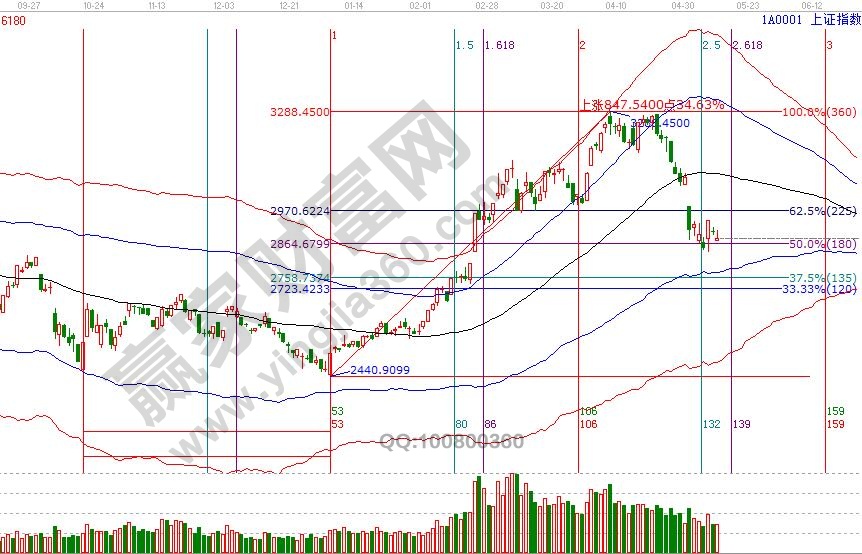 大盤延續(xù)極反通道生命線下弱勢(shì)通道運(yùn)行,按贏家江恩十六字投資真言,時(shí)價(jià)共振短線反彈信號(hào)依然存在,隨著江恩時(shí)間窗口臨近,短線又將再度選擇方向,前期的快速下跌,市場(chǎng)需要時(shí)間積累能量化解短線壓力,按工具信號(hào)開倉的籌碼,要有足夠的耐心和充分的風(fēng)險(xiǎn)控制能力,應(yīng)對(duì)策略可查看14號(hào)大勢(shì)分析。15號(hào)盤中支撐壓力是180度2928點(diǎn)、315度2944點(diǎn),盤中支撐0度2860點(diǎn),本周五17號(hào)是5月第二個(gè)時(shí)間窗口。操作策略,指數(shù)擊破黑色生命線,藍(lán)色下軌線是回撤目標(biāo)位,高風(fēng)險(xiǎn)者倉位3-4成,低風(fēng)險(xiǎn)者等待中期參考位。
