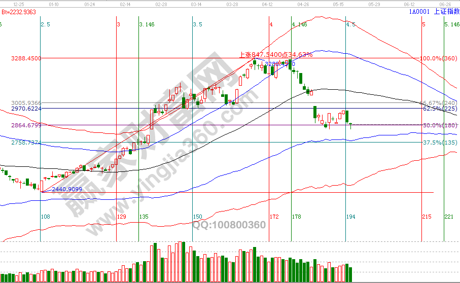 5月除9號(hào)至17號(hào)時(shí)間窗口有一次操作機(jī)會(huì)外,判斷的本月還會(huì)有一次布局機(jī)會(huì),從空間波段百分比1倍循環(huán)二分位2834點(diǎn)與極反通道藍(lán)色下軌線(詳見工具)是參考區(qū)間,贏家江恩系統(tǒng)時(shí)間周期方面,本周短周期重要時(shí)間窗口是23號(hào),日線時(shí)間窗口是28(29)號(hào)。通過系統(tǒng)工具預(yù)判方法得出參考空間與時(shí)間后,投資者要做的就是跟隨市場(chǎng)并做出應(yīng)對(duì)策略,并且預(yù)判此區(qū)間展開的反彈要強(qiáng)于第一波,具體空間與時(shí)間會(huì)在系統(tǒng)VIP學(xué)員公布。21號(hào)盤中壓力是90度2894點(diǎn)、135度2870點(diǎn),盤中支撐是315度2844點(diǎn)、270度2829點(diǎn)。操作策略,指數(shù)擊破黑色生命線進(jìn)入弱勢(shì)區(qū)域,高風(fēng)險(xiǎn)者倉(cāng)3成,低風(fēng)險(xiǎn)者本周進(jìn)入備戰(zhàn)等待信號(hào)。