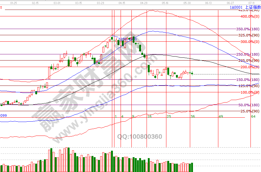 江恩時間周期精準(zhǔn)判斷出5月份市場拐點(diǎn),4、5號是6月份第一個日線時間窗口,投資者明后兩天應(yīng)關(guān)注好市場方向選擇;趨勢與空間結(jié)合判斷,目前整體處于反彈周期,上周進(jìn)入反彈第一目標(biāo)區(qū)2928-2960后量能不及回落,指數(shù)不破波段百分比延伸線二分位2834點(diǎn)反彈預(yù)期不變,待突破第一區(qū)間后反彈將全面展開。4號盤中壓力是135度2911點(diǎn)、180度2928點(diǎn),盤中支撐是45度2877、0度2860點(diǎn),6月時間窗口分別是4(5)號、13號、25號。操作策略,指數(shù)擊破黑色生命線進(jìn)入弱勢區(qū)域,整體持倉保持在3-4成,做到進(jìn)可攻退可守。