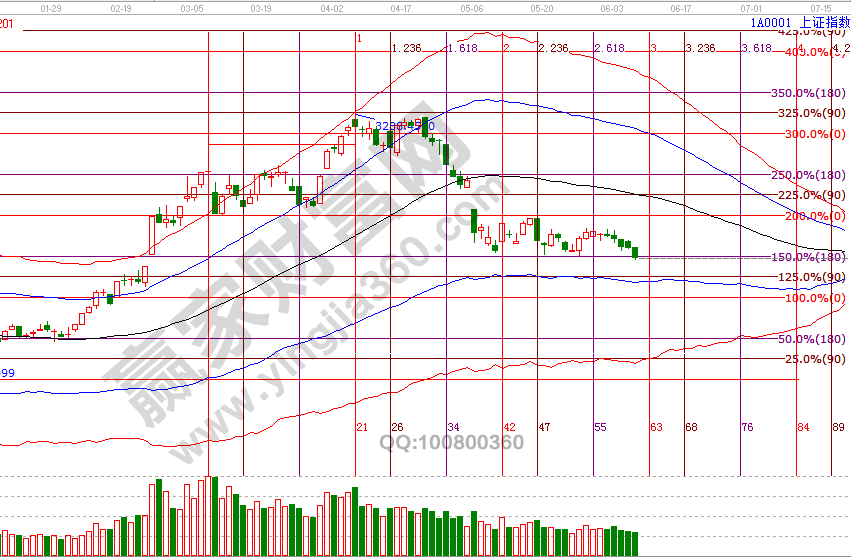 江恩理論中有一條分析規(guī)則四次遇阻力(支撐)而破,價格分析中波段百分比延伸線1倍循環(huán)180度2834點,指數(shù)按規(guī)則第四次觸碰時擊破,結合趨勢判斷,極反通道藍色下軌線是止跌重要參考線。按歷史規(guī)律,市場不同階段的重要拐點均在極反通道5條線上,盤中擊破2834點時,贏家江恩技術服務團隊在VIP學員群中談到,4月22號提示風險帶領大家減倉轉入休息,5月份二次在2840點是高風險者分批博弈,應用區(qū)間交易法均獲得利潤。市場下破2834點,延續(xù)調整是低風險者空倉或輕倉者的機會,市場走勢是有規(guī)律可循,而贏家江恩系統(tǒng)中極反通道就是一個直觀、有效的判勢工具,用規(guī)則紀律行事,買在支撐賣在壓力。本周是周線、日線時間窗口共振時間段,跟隨市場觀察是否與價格形成時價四方共振,6月10號盤中壓力是315度2844點、0度2860點,盤中支撐是180度2800、135度2786點。操作策略,指數(shù)擊破黑色生命線進入弱勢區(qū)域,整體持倉保持在3-4成,做到進可攻退可守。