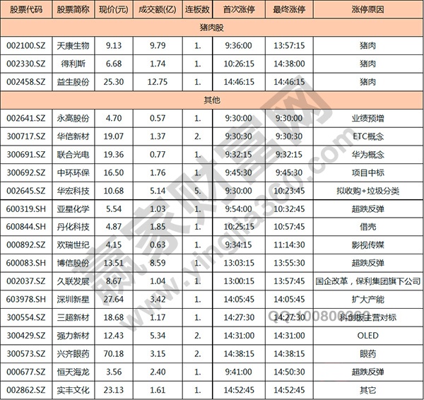 盤面上,中國保利集團(tuán)有限公司與中國中絲集團(tuán)有限公司實(shí)施重組,久聯(lián)發(fā)展(002037)直線封板;養(yǎng)殖板塊小幅上漲飄紅,天康生物(002100)漲停,得利斯(002330)、德美化工(002054)大幅拉升;農(nóng)業(yè)股午后拉升,敦煌種業(yè)(600354)沖擊漲停;ETC概念出現(xiàn)分化,華信新材(300717)、星帥爾(002860)漲停。ST板塊走弱,*ST節(jié)能(000820)等近20股跌停。個(gè)股方面,新城控股(601155)一字跌停,博信股份(600083)午后上演“地天板”走勢(shì),盤中一度漲停。