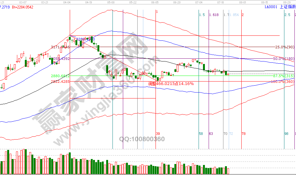 23(24)號是贏家江恩時間工具測算本月最后一個時間時間窗口,8號中陰后橫肋第12天,按費氏時間線做圖25號是第13天,這是短線時間極限窗,進(jìn)入方向博弈決戰(zhàn)期。趨勢方向,三大指數(shù)深指、創(chuàng)業(yè)板在日線極反通道生命線上運行,滬指線下弱勢區(qū)運行,深市保持強勢運行還有機(jī)會帶動滬指轉(zhuǎn)好,深市失守則確認(rèn)日線趨勢轉(zhuǎn)弱。價格關(guān)鍵位上,滬指擊破波段百分比延伸線240度2878點,或收復(fù)日線生命線2926點會有操作,這兩天要多盯盤做好應(yīng)對。7月24號盤中壓力是135度2911點、180度2928點,盤中支撐是0度2860點、315度2844點。操作策略,指數(shù)極反通道生命線下弱勢震蕩,整體持倉保持3成以內(nèi),用規(guī)則紀(jì)律應(yīng)對盤面方向選擇。