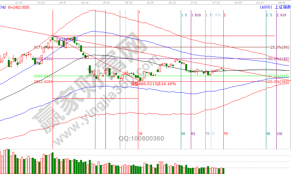 自29號(hào)開始在分析中強(qiáng)調(diào)有持倉(cāng)的投資者這幾天跟蹤好盤面動(dòng)向,30號(hào)上攻日線百分比零度位2966點(diǎn)(最高2965誤差1個(gè)點(diǎn))時(shí)談到不再適合開新倉(cāng),昨天低開低走,已收盤數(shù)據(jù)分析,指數(shù)依然在分析的關(guān)鍵線日線生命線與60分鐘生命線共振位2928點(diǎn)上方,1號(hào)是8月首個(gè)日線時(shí)間窗口,關(guān)注好時(shí)間窗口,K線與趨勢(shì)線的關(guān)系來決定短線倉(cāng)位去留。8月1號(hào)盤中壓力是225度2944點(diǎn)、270度2961點(diǎn),盤中支撐是180度2928點(diǎn)、135度2911點(diǎn)。操作策略,指數(shù)極反通道生命線震蕩,指數(shù)失守60分鐘生命線則反彈信號(hào)結(jié)束,向上則關(guān)注60分藍(lán)色上軌線也有望形成反彈結(jié)束信號(hào),投資者保持3成。