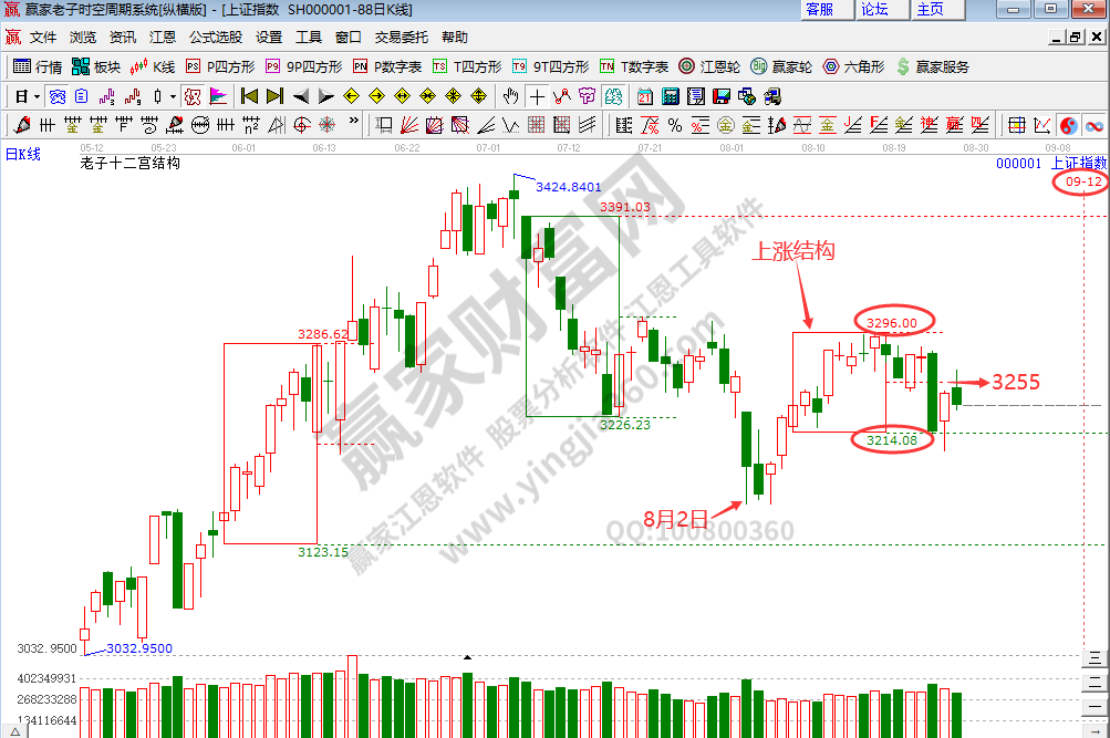 滬指8月26日以陰線收盤(pán),工具信號(hào)顯示指數(shù)當(dāng)前處于觀察期,等待工具信號(hào)對(duì)方向的進(jìn)一步確認(rèn)。指數(shù)按預(yù)期在老子十二宮上漲結(jié)構(gòu)綠色支撐線3214點(diǎn)獲得支撐后反抽警戒線3255點(diǎn),維持前期觀點(diǎn),如站上3255點(diǎn),短期上攻有望延續(xù)至結(jié)構(gòu)頂部3296點(diǎn);如不能站上此線,將再次下探3214點(diǎn)和8月2日低點(diǎn)3155點(diǎn)。時(shí)間方面,老子十二宮顯示下一個(gè)時(shí)間窗口為9月12日。操作策略上,極反通道生命線下弱勢(shì)區(qū)域內(nèi)運(yùn)行,減少操作頻次,以輕倉(cāng)操作或空倉(cāng)休息為主,繼續(xù)密切關(guān)注證券、銀行、保險(xiǎn)這些大金融板塊。